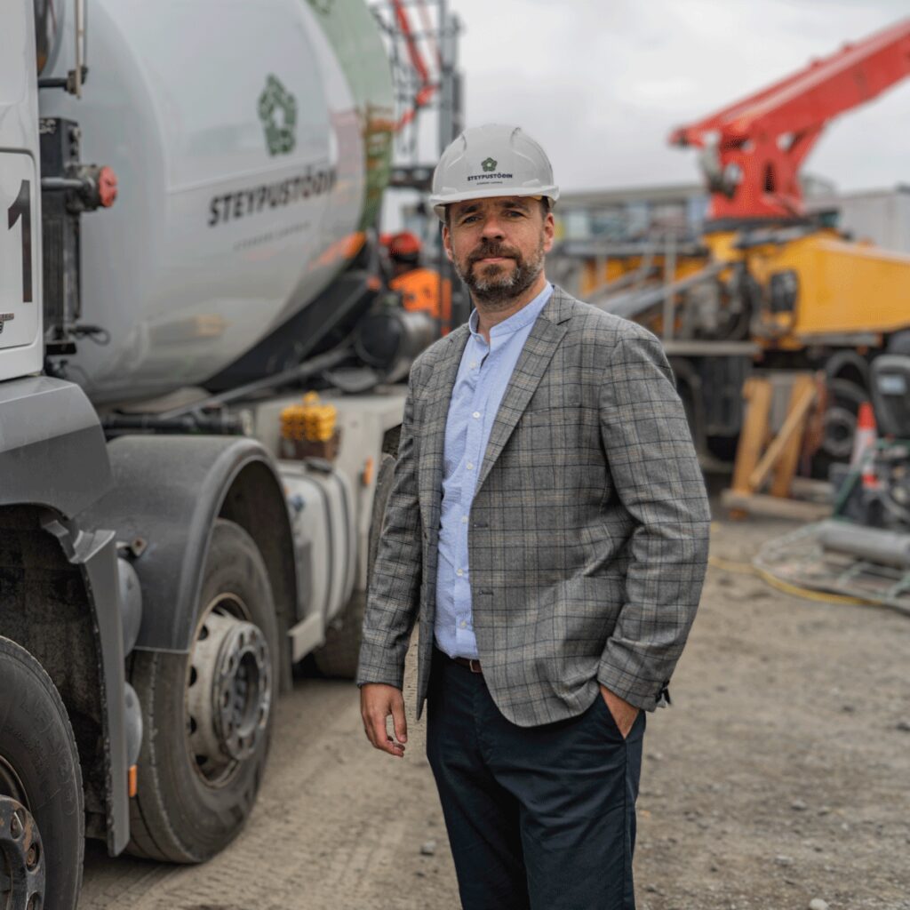 Auk nýfjárfestinga í grænum ökutækjum hefur Steypustöðin þróað nýjar og umhverfisvænni steyputegundir sem hafa lægra kolefnisspor heldur en hefðbundin steypa. Nýja steypan mætir t.d. kröfum byggingaraðila sem vilja draga sem mest úr losun á öllum stigum mannvirkjagerðar. Björn segir að í þeim framkvæmdum leggi Steypustöðin sitt að mörkum með því að flytja steypuna á verkstað með rafknúnum ökutækjum og með því að dæla steypunni þangað sem hún eigi að fara með rafmagni í stað olíu. „Megnið af tækjum til malarvinnslu eru keyrðar á rafmagni. Næstu verkefni snúa m.a. að því að geta unnið alla námuvinnslu með rafmagni og að geta síðan flutt hráefni þaðan með sama hætti til steypustöðvanna eins og við erum þegar byrjuð á með fyrsta rafknúna malarflutningabílnum.“