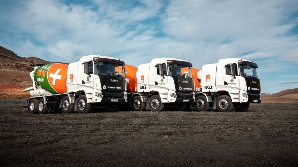Á innan við ári hefur Steypustöðin fjárfest í og tekið í notkun fimm nýja og rafknúna vörubíla sem saman standa af þremur steypubílum, steypudælubíl og dráttarbíl. Tveir steypubílanna bættust fyrir fáeinum vikum, en fyrirtækið vinnur hratt að orkuskiptum í flotanum og gerir ráð fyrir að árið 2032 verði 70% tækjaflotans rafknúin að hluta eða öllu leyti.