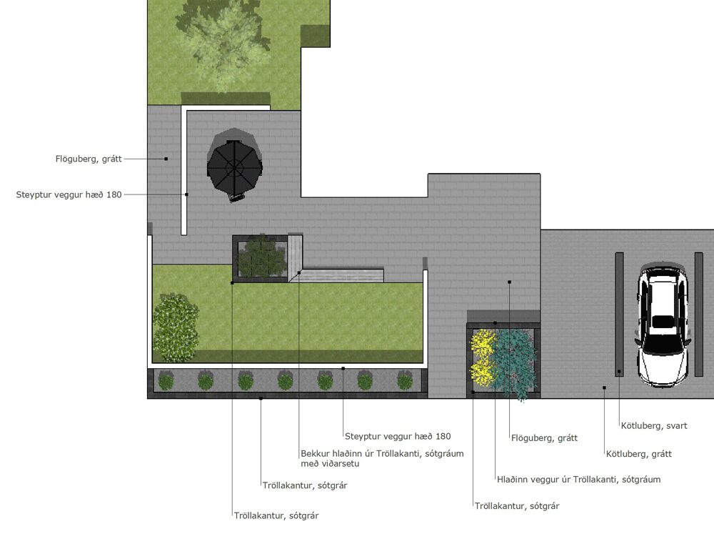 Eftir langan dag í vinnunni og bið í umferðarsúpu á leiðinni heim, er ekkert notalegra en að koma að snyrtilegu húsinu með fallega útfærðri heimkeyrslu og aðkomu að útidyrum sem tekur vel á móti bæði íbúum og gestum. Bílnum er rennt ljúflega inn á hellulagt og snyrtilegt bílaplanið þar sem honum er stungið í samband við hleðslustöðina. Frá bílaplaninu er gegnið inn á rúmgott svæði við útidyrnar með húsgögnum og blómpottum sem litrík sumarblóm flæða út úr. Ef hlýtt er í veðri má setjast niður og taka nokkrar mínútur í núvitund áður en farið er inn í húsið til að takast á við amstur síðdegisins. En, hvað þarf til að gera þessa mynd að raunveruleika?