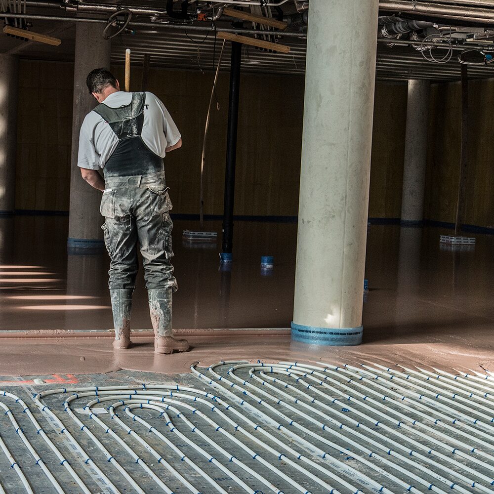 Anhýdrít er gipsbundið ílagnarefn með frábæra hitaleiðini sem hentar m.a. yfir hitalagnir í íbúðarhúsnæði og skrifstofubyggingum.