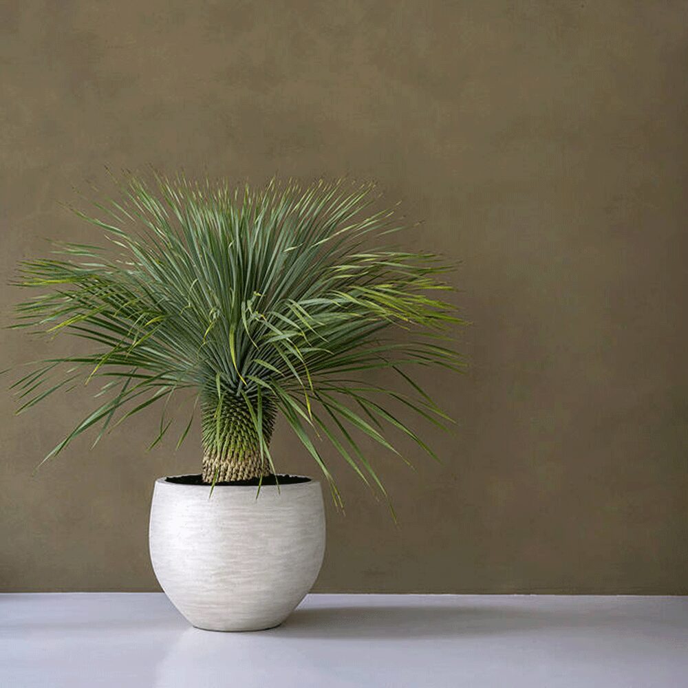 Blómapottur Jumbo Orb M Ivory Washed er meðalstór og hringlaga pottur með fallegu náttúrulegu yfirbragði. Matta ivory áferðin gefur honum hlýjan og nútímalegan blæ sem passar vel í garða, á svalir eða sem skrautlegt innanhúsatriði. Potturinn er gerður úr léttu og endingargóðu Fiberstone efni sem hentar vel við íslenskar aðstæður.