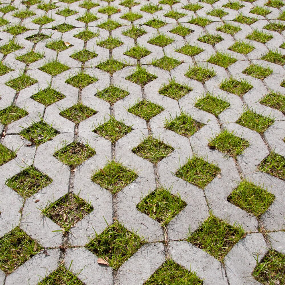 Grassteinninn tengir græn svæði við steinlögð svæði með stílhreinum og náttúrulegum hætti. Þessi tegund af hellum drena vel þar sem vatn kemst auðveldlega í gegnum þær og aftur í grunnvatn eða regnvatnskerfi sem stuðlar að bættri vatnshringrás. Þessar tegundir af hellum drena vel í jarðvegi.